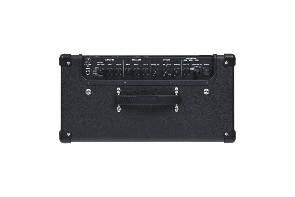 The Katana-50 Gen 3 model strikes the perfect balance of punch and portability, offering 50 watts of Class AB power in a compact 1x12 combo.