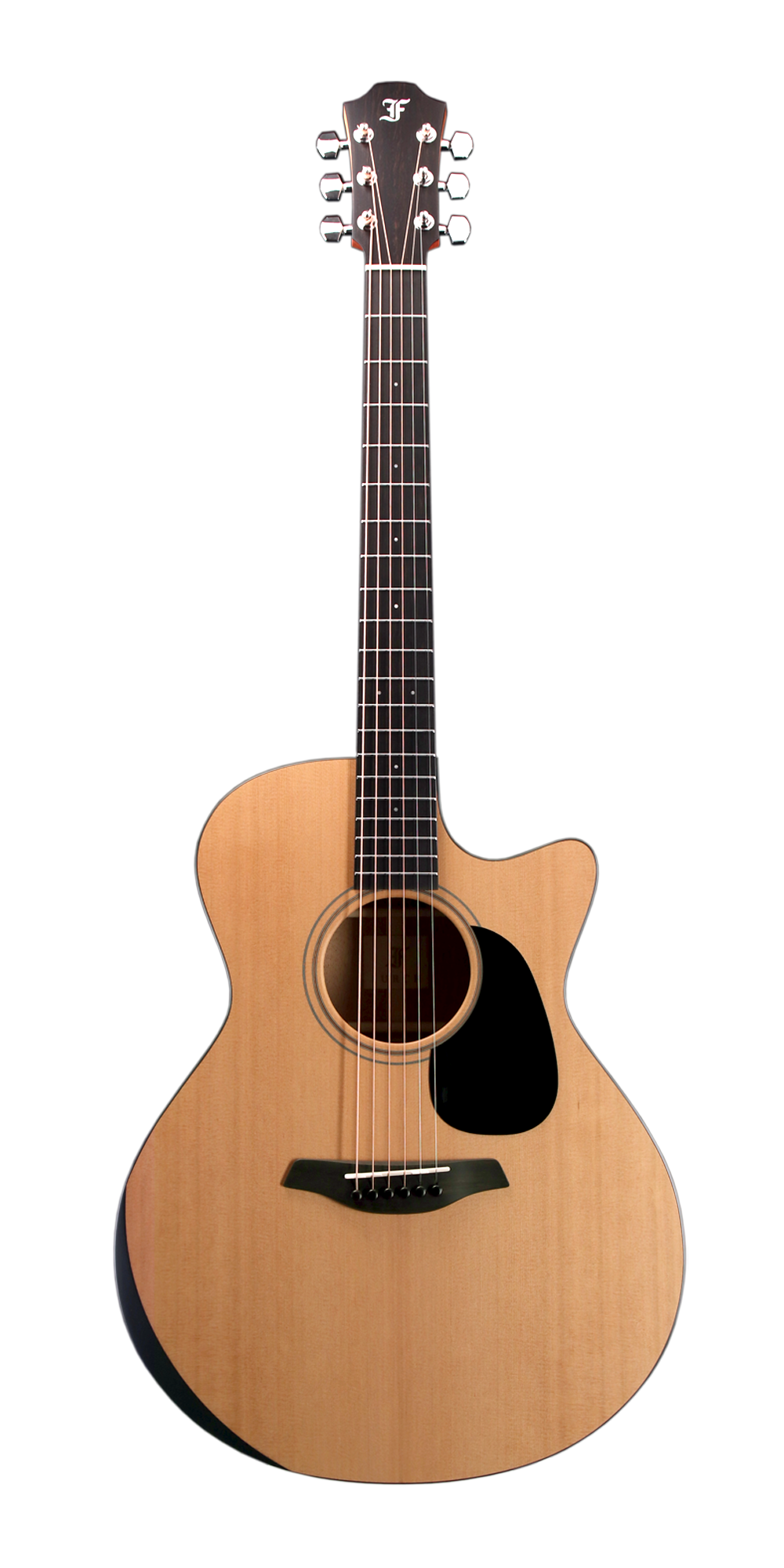The ebony fingerboard is adorned with pearl front dot and side linear position markers that improve fingerboard orientation and enhance the guitar’s stylish appearance.